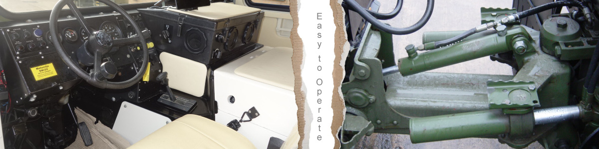 The Bv206 is actually a very simple vehicle to drive due to it having an automatic transmission and a steering system which offers some interesting side benefits namely: The rear tracks follow exactly in the footprint of the front The vehicle is very easy to reverse Go back Uses center point articulation (2 x rams pulling in and out respectively) to steer the vehicle Mercedes Benz automatic transmission Uses center point articulation (2 x rams pulling in and out respectively) to steer the vehicle Mercedes Benz automatic transmission