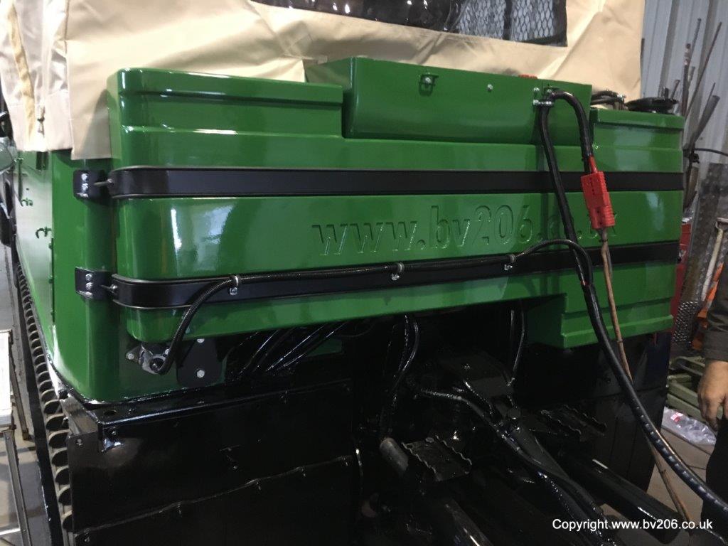 The units come with a steel rear body which was used as an ammunition locker but has been used by customers as a water or fuel tank by sealing up the side locker doors to make it water tight.