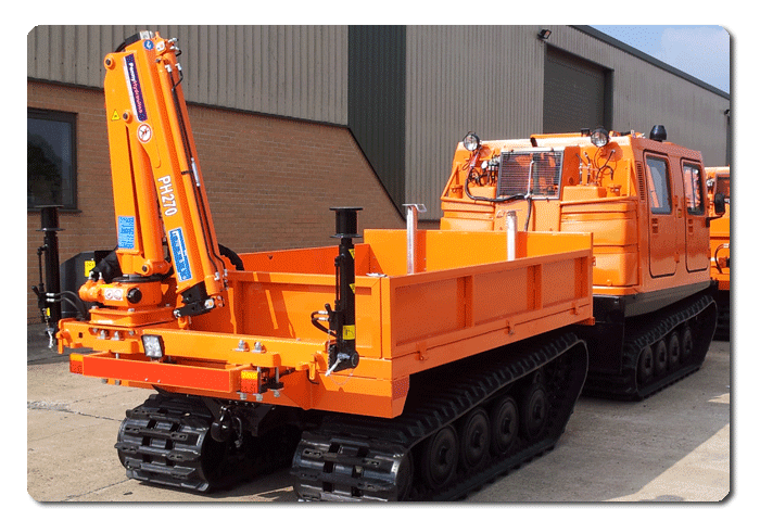 In this example you can see how we have installed a small HIAB crane to permit the machine to self load and unload. Being able to load and unload itself makes this machine extremely versatile and is why so many utility (Gas, Water, Electricity) companies use them in areas where other vehicles are restricted either through the terrain or the fact that constant travelling to and from the location is tearing up the terrain.